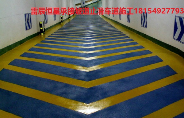 無震動止滑坡道是一種多角性硬度極高之礦物彩砂骨料與環氧樹脂基料(聚氨酯)組成,采用特種現場工藝施工而成。施工完成后的坡道,是一個耐磨性好,構造深度大,行車無震動的涂層系統,達到行車的舒適和防滑效果。
